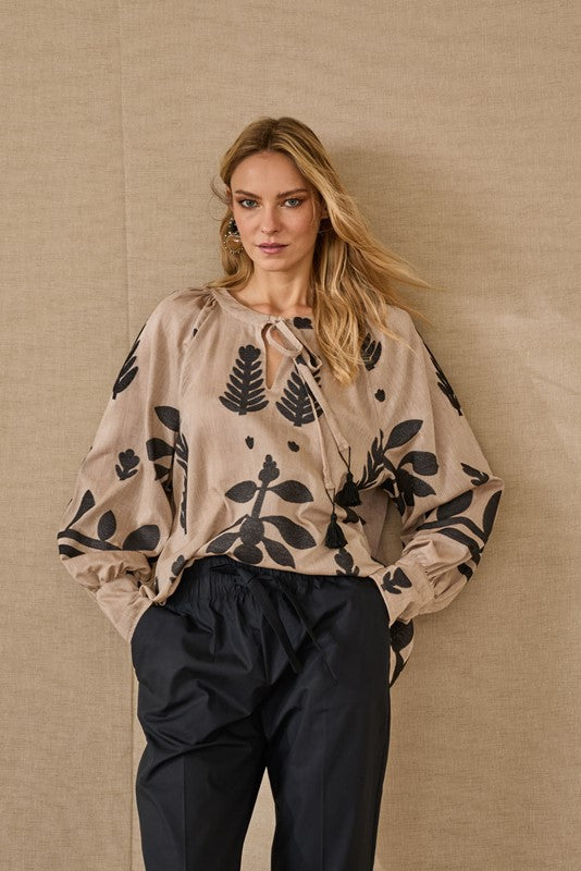 La camicia sabbia SOUVENIR F39X0121 è un capo raffinato della collezione Primavera/Estate 2026. Con la sua tonalità neutra e i dettagli multicolore sofisticati, questa camicia rappresenta l'eleganza versatile del brand.