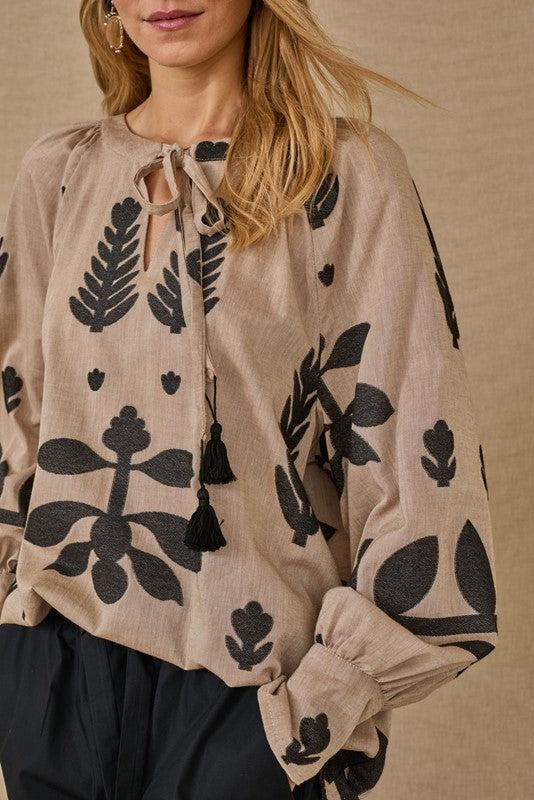 - Tonalità sabbia naturale con dettagli multicolore