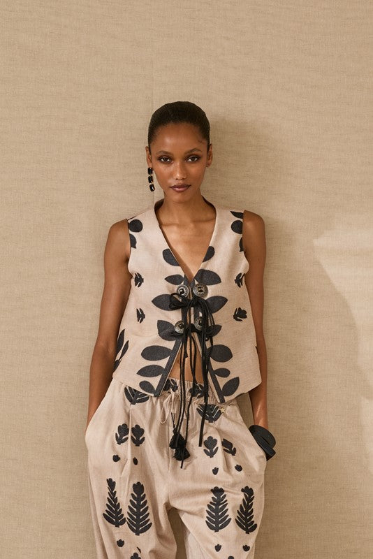 Il gilet sabbia SOUVENIR F39X0122 è un capo versatile della collezione Primavera/Estate 2026. Con la sua tonalità neutra e i dettagli multicolore sofisticati, questo gilet rappresenta lo stile layering perfetto del brand.